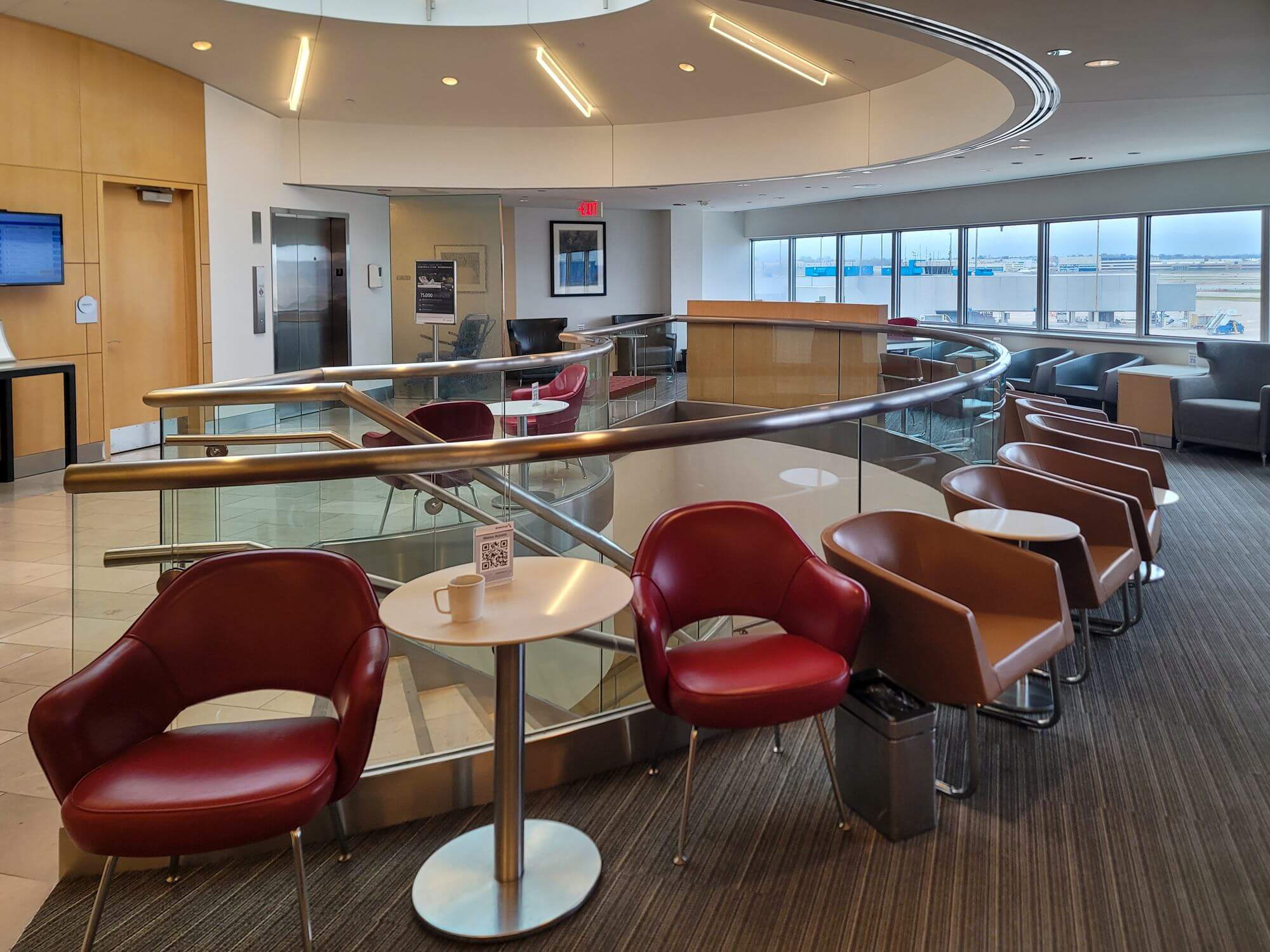 The area next to the staircase has a large windows which give you a good view of the airport.