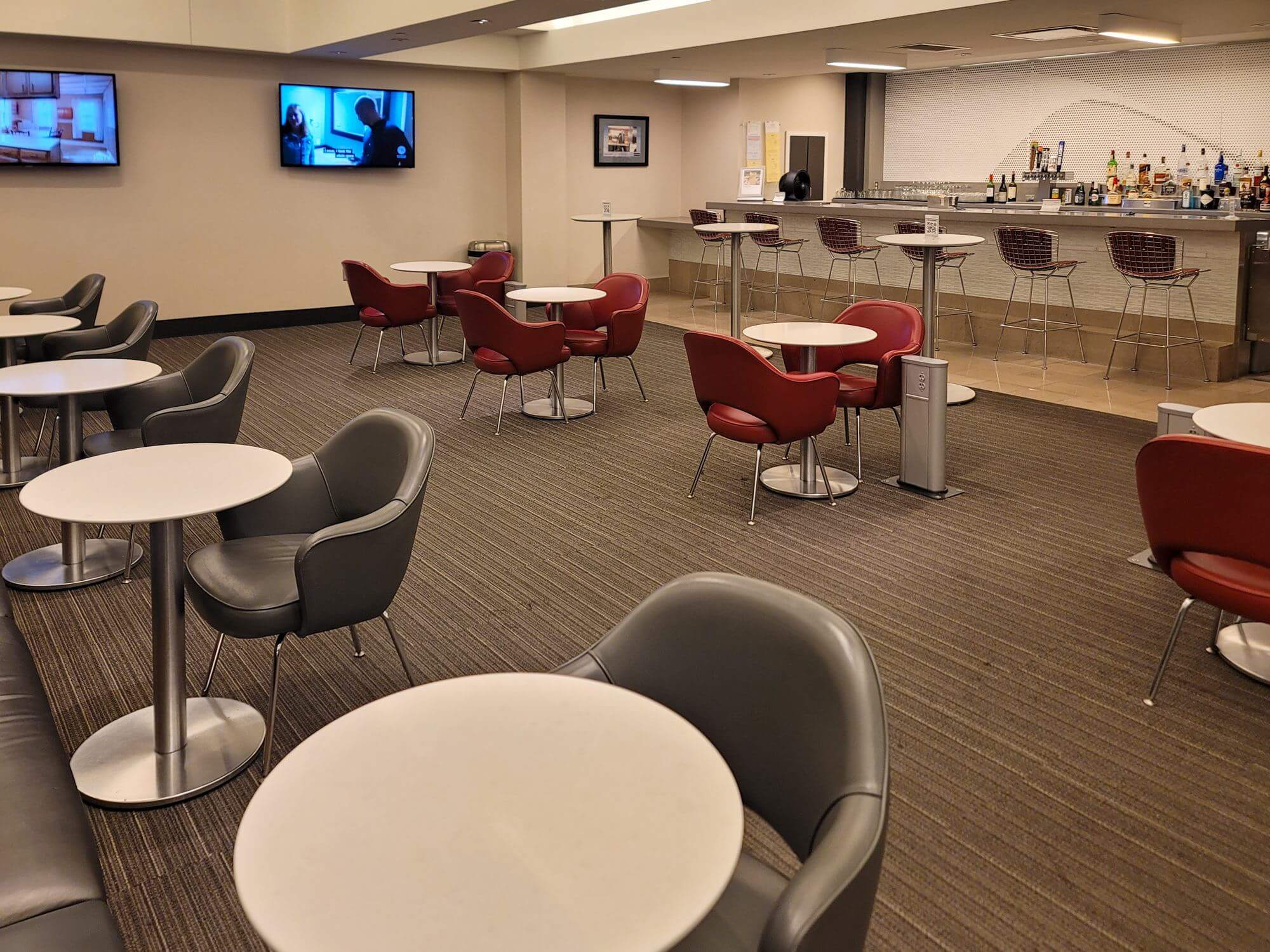 The Admirals Club St. Louis has a decent bar area. There are plenty of dining tables set up between the bar and the food buffet. Great to enjoy a little snack.