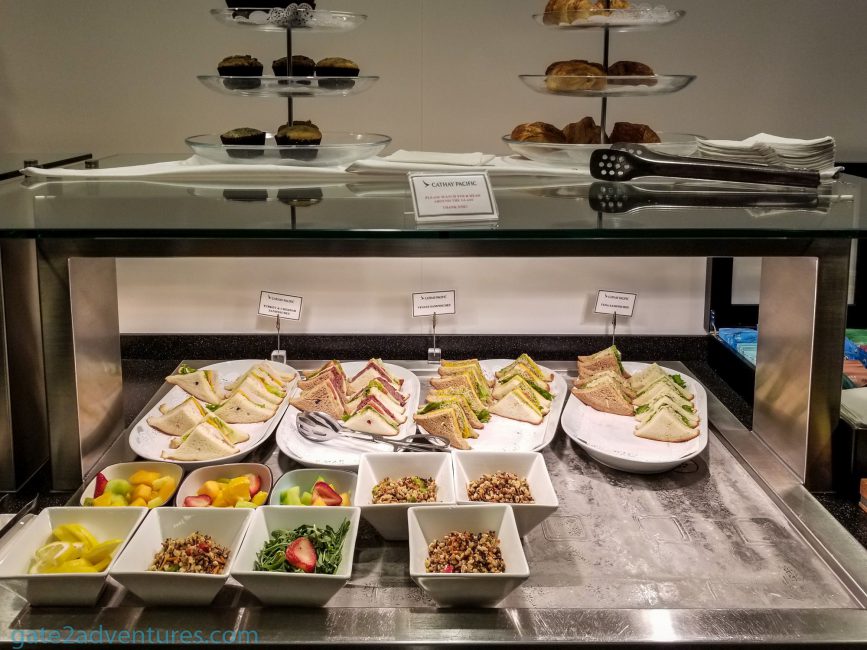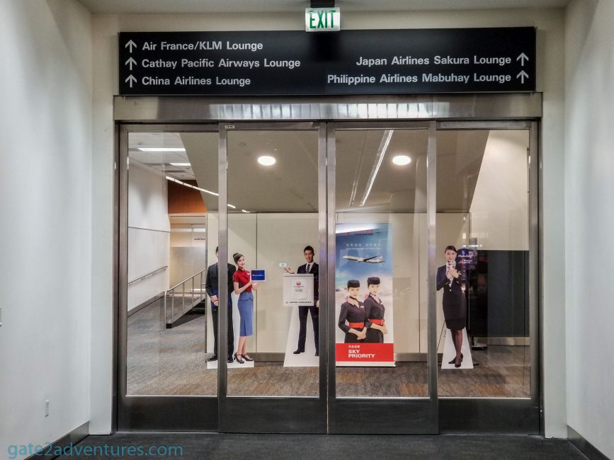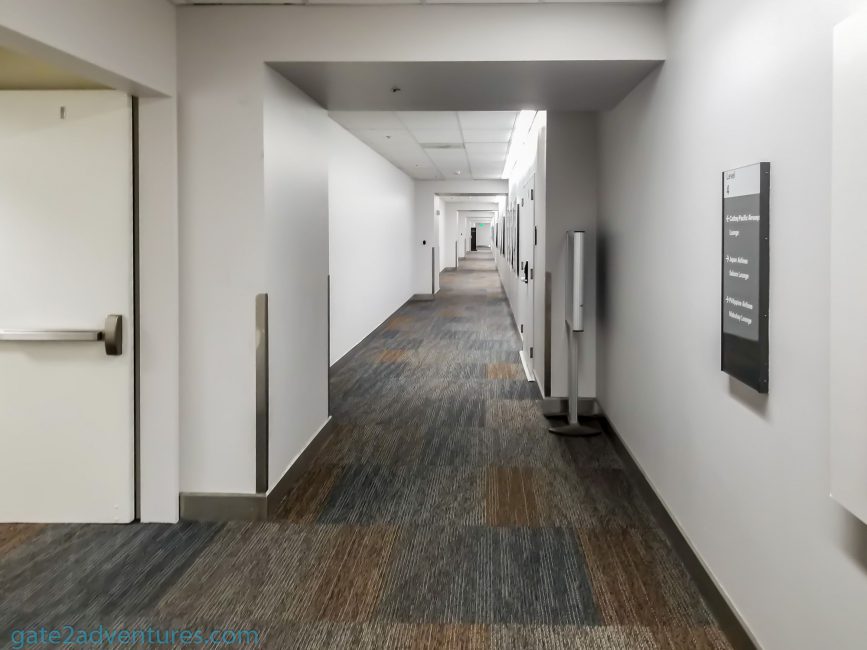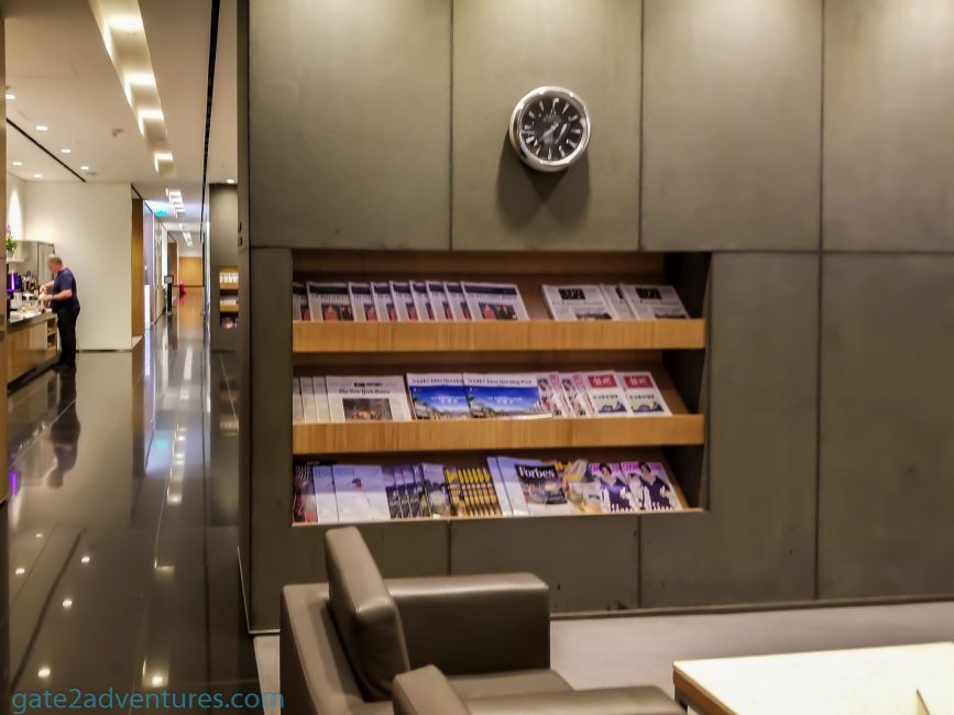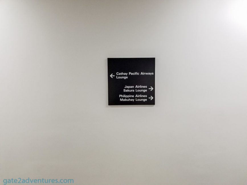 Cathay Pacific’s lounge is located on the 4th floor of the International Airport, together with a bunch of other lounges. Once you passed through security there is an automatic door on your left, go through there and follow the signs to the Cathay Pacific Lounge. You can use either the elevator or escalator to get one floor higher. Once there, walk down the long hallway to the left and the entrance of the lounge will be to your left as well. Very easy to find. To your right would be the Japan Airlines Sakura Lounge and the Philippines Airlines Mabuhay Lounge.