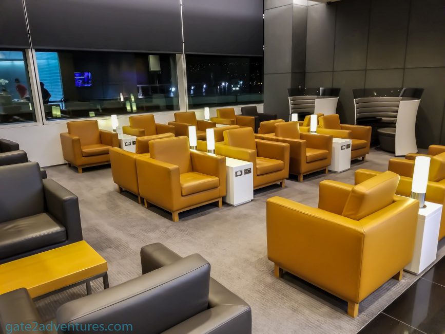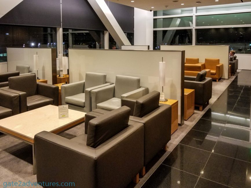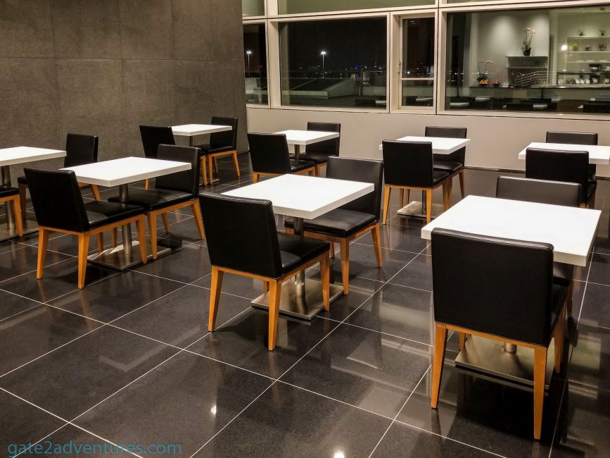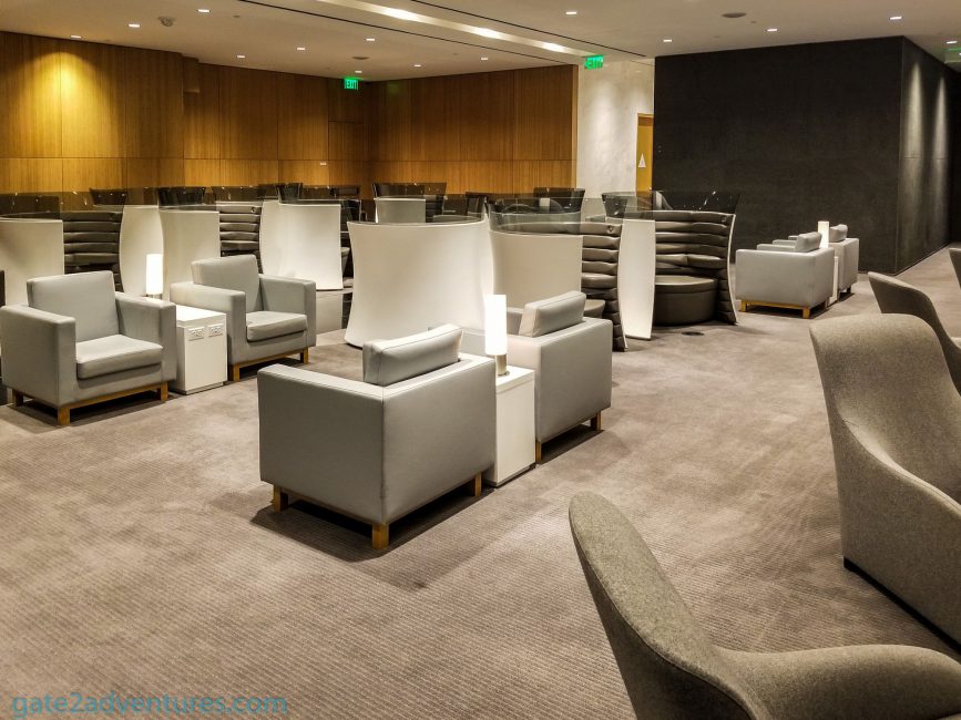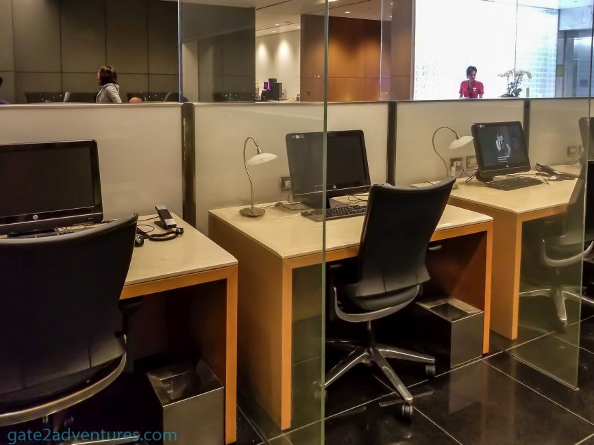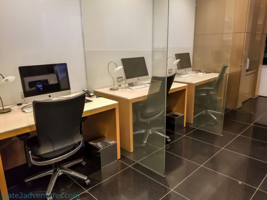 Besides dining tables, there were more comfortable chairs located throughout the lounge. Besides the dining tables pretty much ever chair and seat had a power outlet to charge your devices. If you need to get some business done, there are workstations and printer/fax in the business center near the middle of the lounge, next to the entrance.