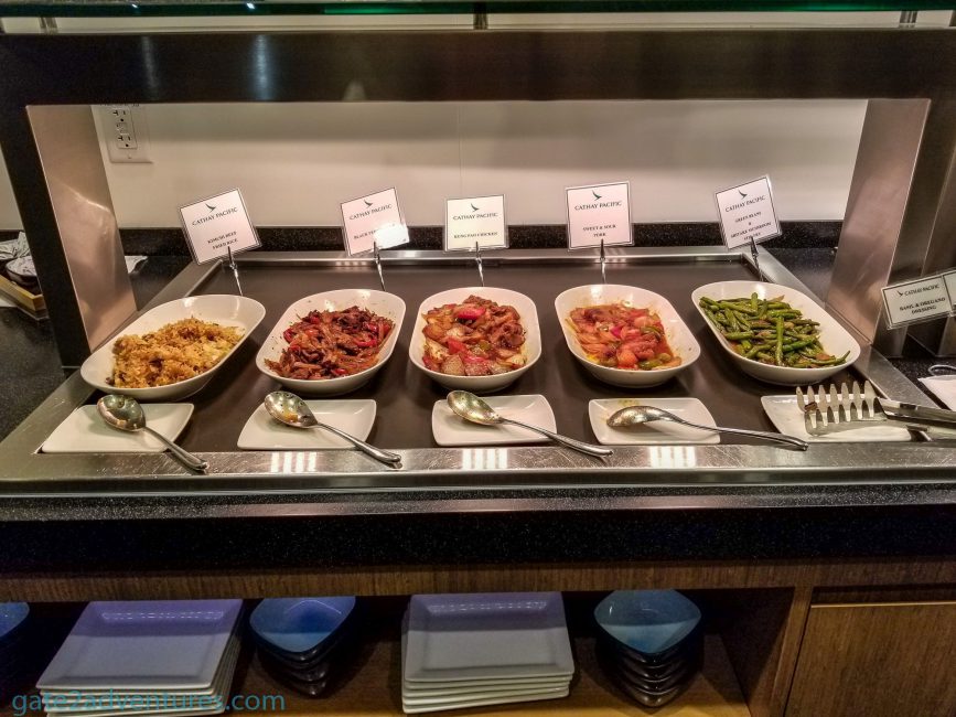 The food got changed to a more Asian-style cuisine with Kung Pao Chicken, Black Pepper Beef, rice and more. The food was really good and they always kept the buffet filled. Even tho that in the time from when I arrived at the lounge until shortly before departure, the lounge never really got to full.