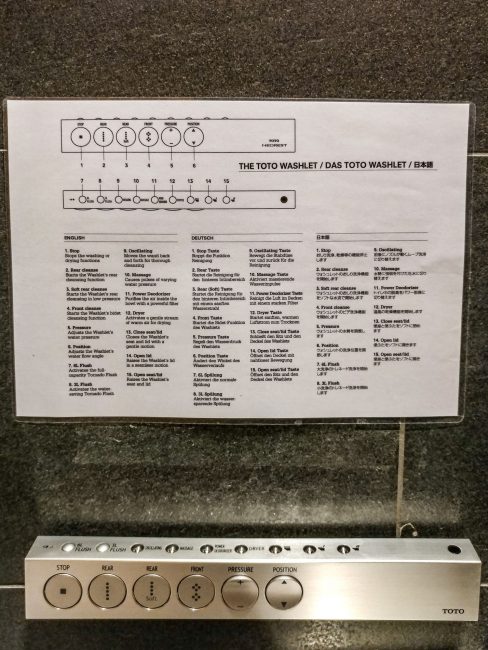 One highlight in this lounge are the Japanese Toilets. If you never experienced them, you should check them out. It’s different to what you know about toilets. The toilet seats offer the full “program of service”.