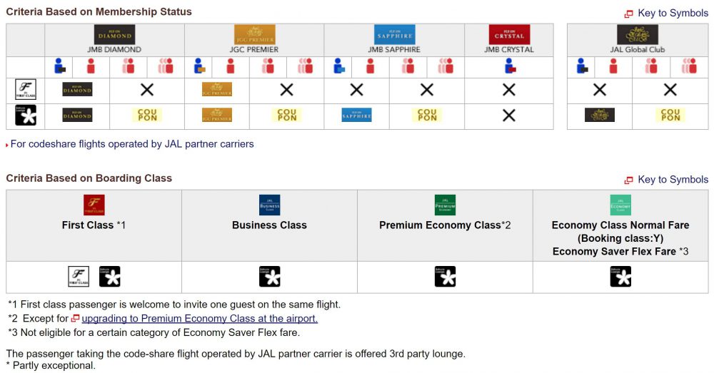 - JMB Diamond, JGC Premier, and JMB Sapphire members departing on a same-day Japan Airlines flight (+1 guest, additional 2 guests with coupons)