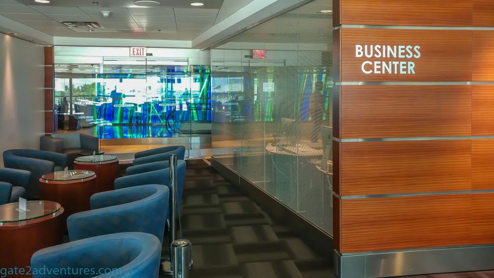 The lounge layout is U-shaped and one of the walls gives you a view of the J Concourse while the other windows give you a limited view of the tarmac and an obstructed view of downtown Miami. Between the two-window section is a wall with no windows and dimmed lighting for passengers who want to take a nap.