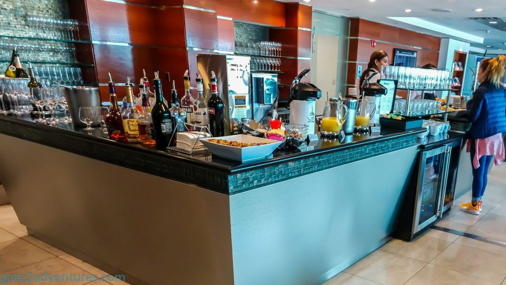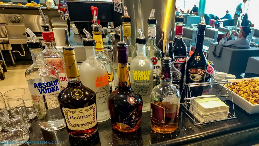 I walked down the corridor and entered the lounge to my left. I did a short walk around in the lounge to see where what is and where a good seat is available. I sat down close to the main buffet and next to a departure monitor. There are two spots for the buffet. One right to your left when you enter the lounge, and the main buffet is basically in the center of the lounge. The main buffet serves all alcoholic beverages as well. Everything from beer, wine, and other spirits.
