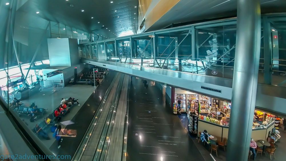 Lucky for me no one was even in line at the security checkpoint for Concourse J. Even tho they don’t officially have a TSA PreCheck line, they officer checking my boarding pass and ID gave me a laminated paper and which allowed me to keep my shoes on and go through the metal detector rather than the “nude-o-scope” but I had to take out my laptops.