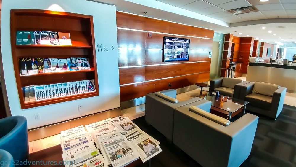 Food-wise they offered little snacks. Small mini “sandwiches”, cookies, cereals, and yogurt. Soft drinks, coffee, wine, and spirits are up for self-service while you had to ask the bartender for beers. Everything is of course complementary. The snacks and food items were continuously restocked and had a “fresh” taste.