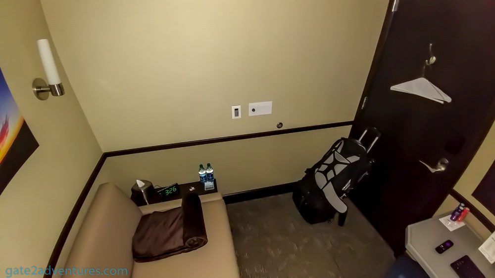 The suite is equipped with a sound masking system that helps to neutralize noise and Nap26 audio program to help deliver a refreshing powernap. Every suite has its own airconditioning unit and you can adjust it to your personal comfort. The whole suite is pretty quiet once inside but they are not completely soundproof. For example, you can hear other guest entering and leaving their suites but that’s about it and it’s not a very big impact.