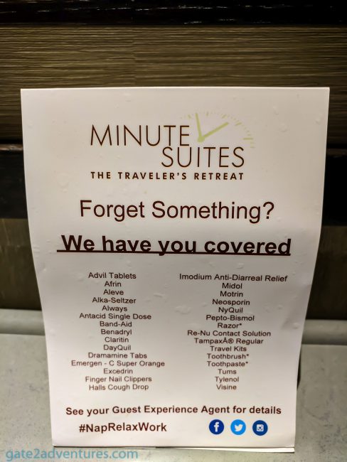 Finding the Minute Suites was easy. I arrived at gate A29 and so I had to walk only a few more gates down to get to the Minute Suites located near Gate A38. The sign was already visible from a distance and easy to recognize.