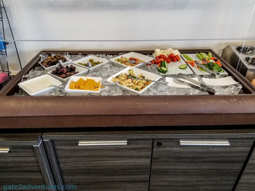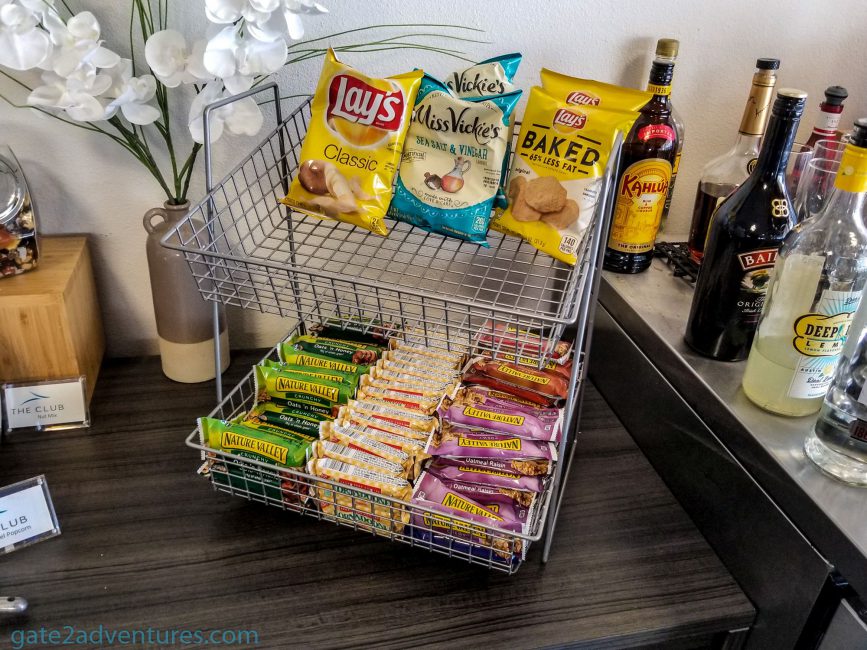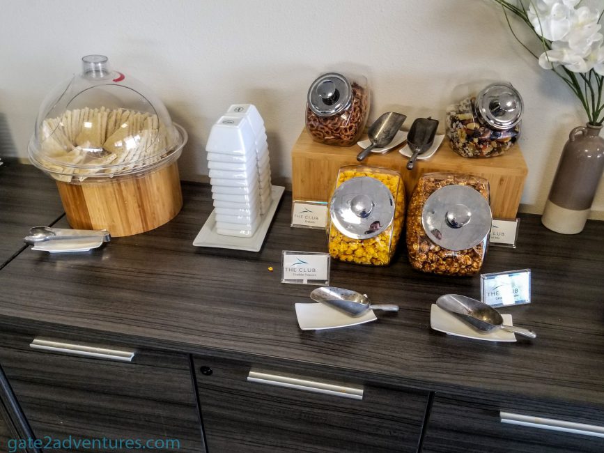 They don’t offer much for snacks and food wise it’s one of the worst lounges. They didn’t even offer cheese and I am such a huge fan of cheese. There are a few complimentary alcoholic beverages like beer and wine and of course, you can get sodas at the bar. The snack buffet also has a coffee and water dispenser.