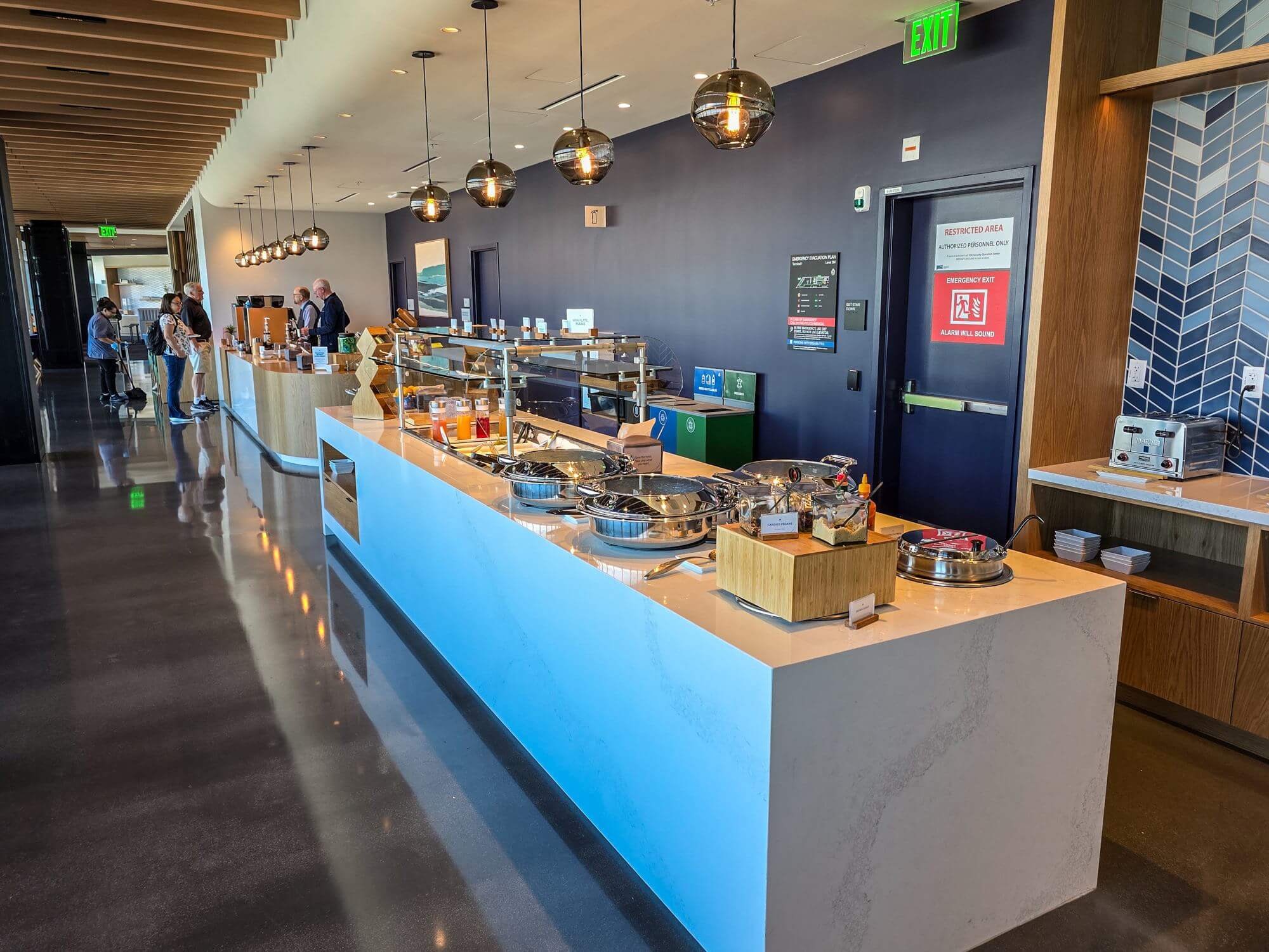 The lounge has a good size and was not overcrowded at all. While I was walking towards the Alaska Lounge, I passed “The Club” Lounge on the way and there was a long line to get in. I assume it is mainly because they accept Priority Pass as a way to access the lounge.