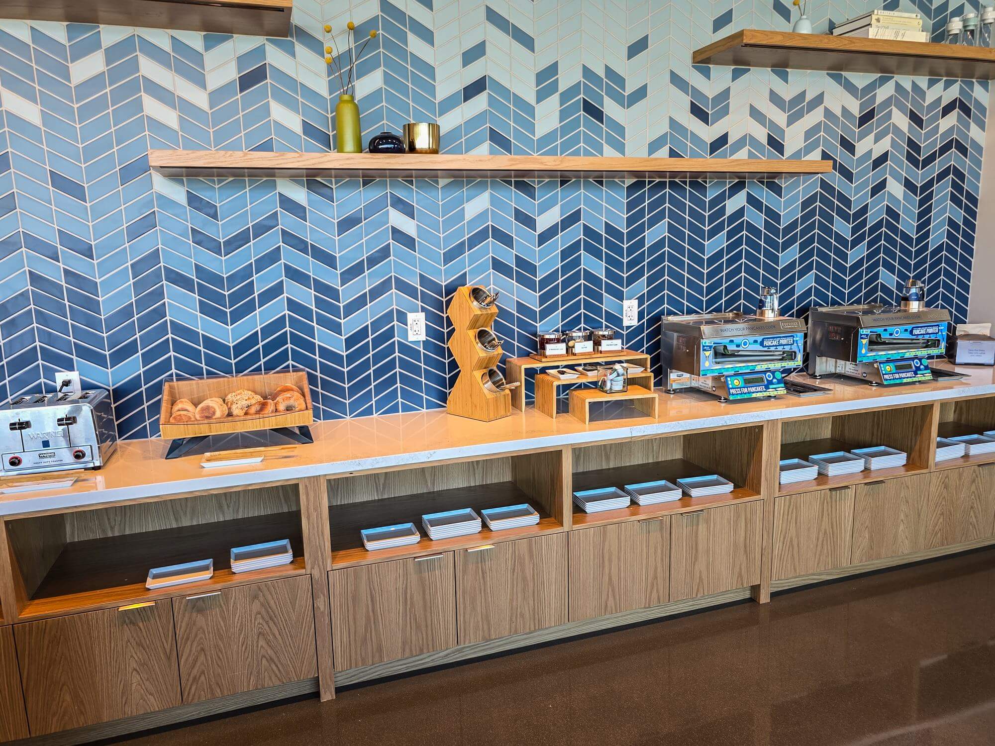 Choose between salads, breads, veggies, warm food and of course Alaska’s famous pancake machines. There is something for everyone. The dining area comes with large tables which can seat comfortable a family for an enjoyable snack.