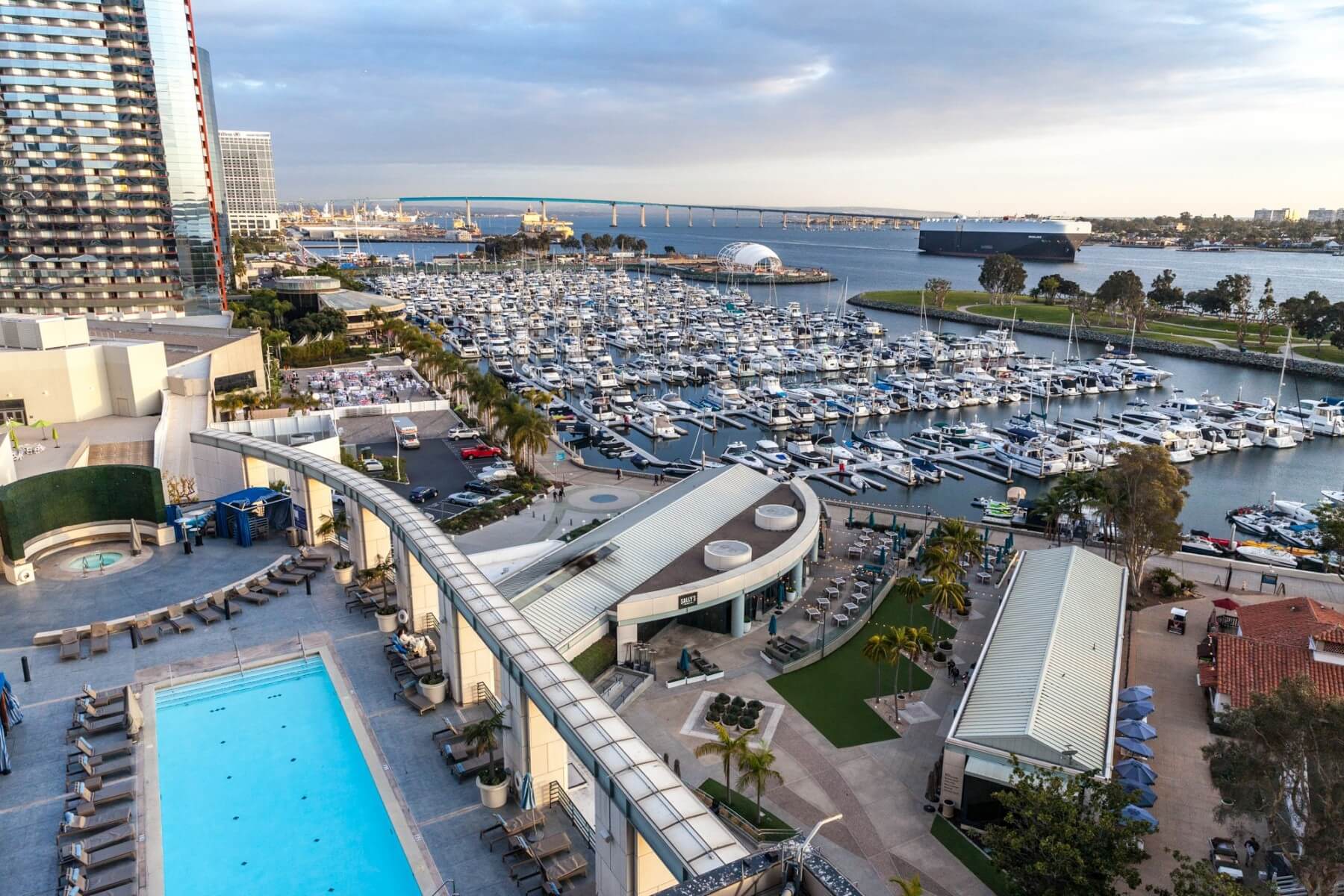 The Manchester Grand Hyatt San Diego has it all. There are plenty of restaurants and bars at the hotel. There is even a Pool Bar & Grill that is open from Memorial Day through Labor Day (noon–5:00 p.m.).