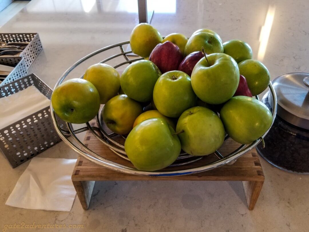 Throughout the day, you can find small snacks like cookies, nuts, and fruits in the Grand Club. Of course, the fridge is open to grab an ice-cold bottle of water or one of the many soft drinks. The coffee machine is also available all day long, which kept me going.