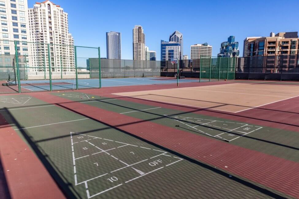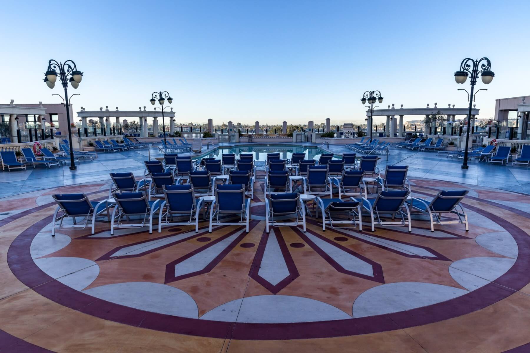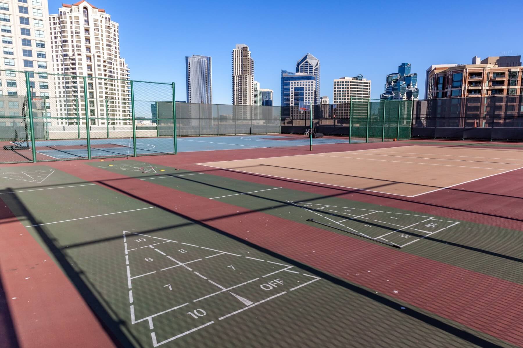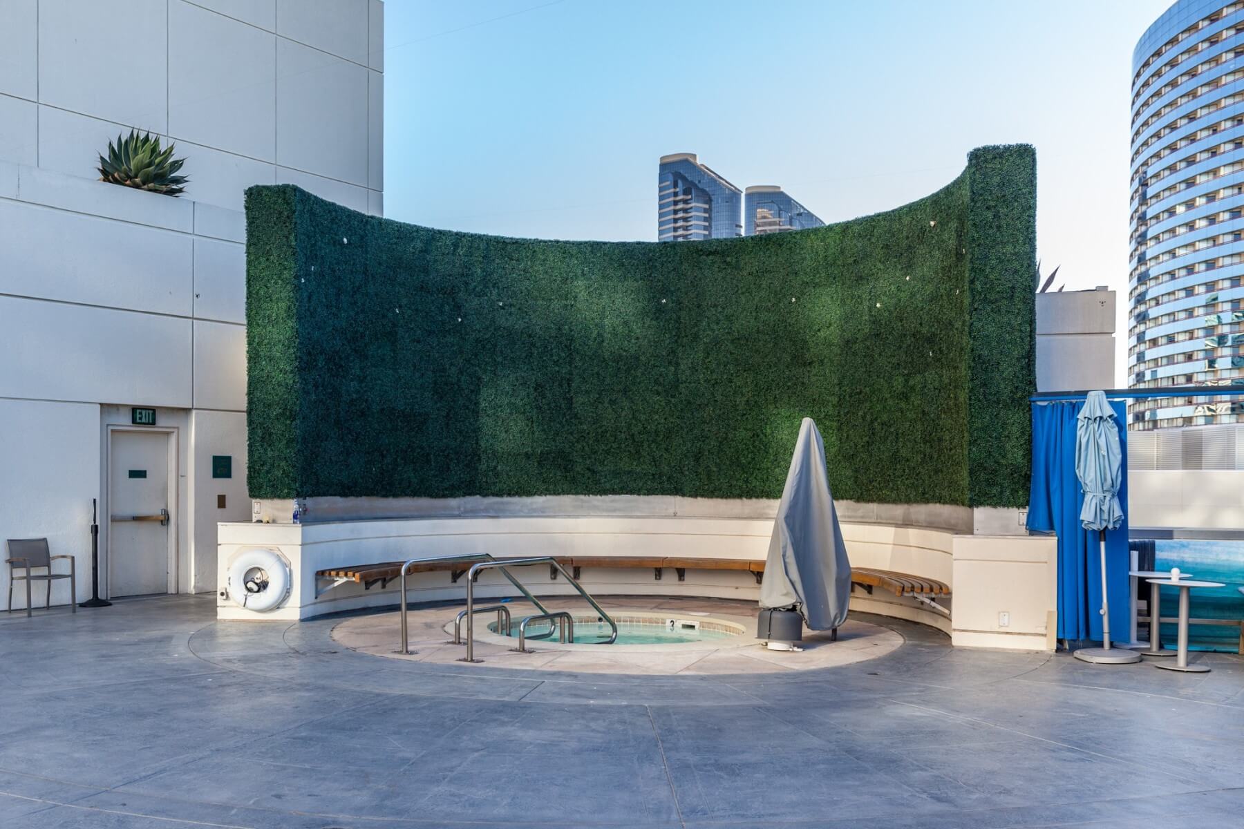 Walk back inside the harbor tower towards the escalator, bypassing the elevators. Follow the signs here to get to the sports court. Yeah, unbelievable but there is a rooftop sports court at the Manchester Grand Hyatt San Diego. Three fields are available for different games, which are basketball, volleyball (unfortunately no sand), and tennis. At the very end is the Rooftop Cinema Club. They weren’t showing anything during my stay. Check their website for showtimes and tickets. Usage of the sports court including the required equipment is complimentary and part of your destination fee. The sport courts remind me of the Grand Hyatt in Hong Kong which also had rooftop tennis courts and a driving range.