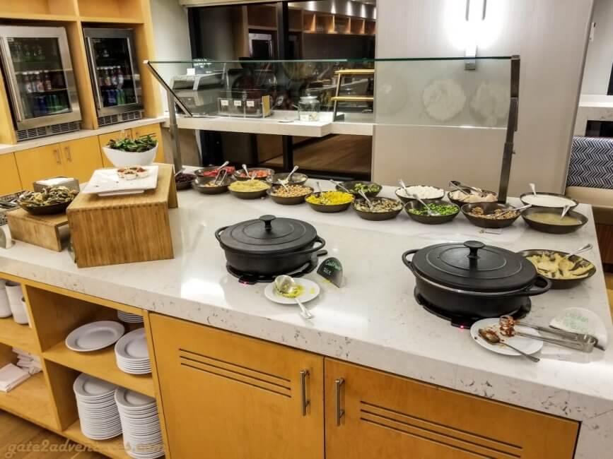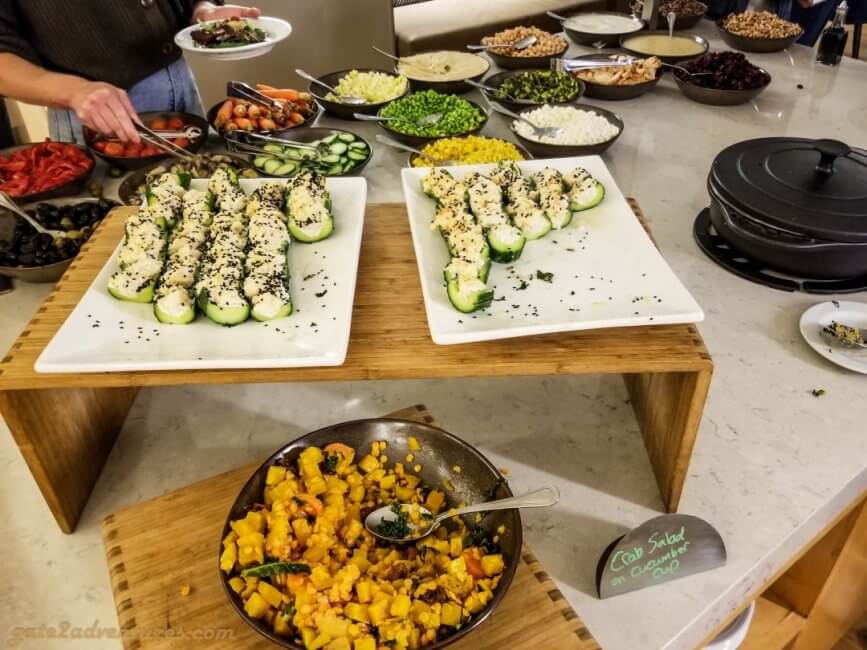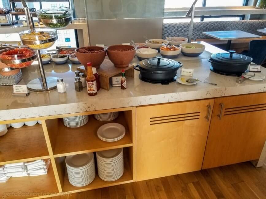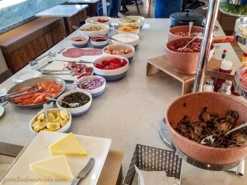 The Grand Club is huge, but I would recommend you to get here as early as possible for breakfast and the evening spread as it is not nearly big enough if you have a lot of people with access to this lounge. There is a very good breakfast selection with all the stuff you expect and of course salmon. I don’t know, but Hyatt got me hooked to have salmon for breakfast.