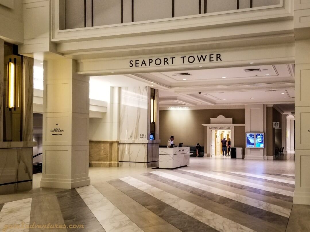 From the front desk, I walked over to the bell desk to get my luggage up to my room. The bell desk is to the right of the front desk, just in front of the elevator to the Seaport Tower.