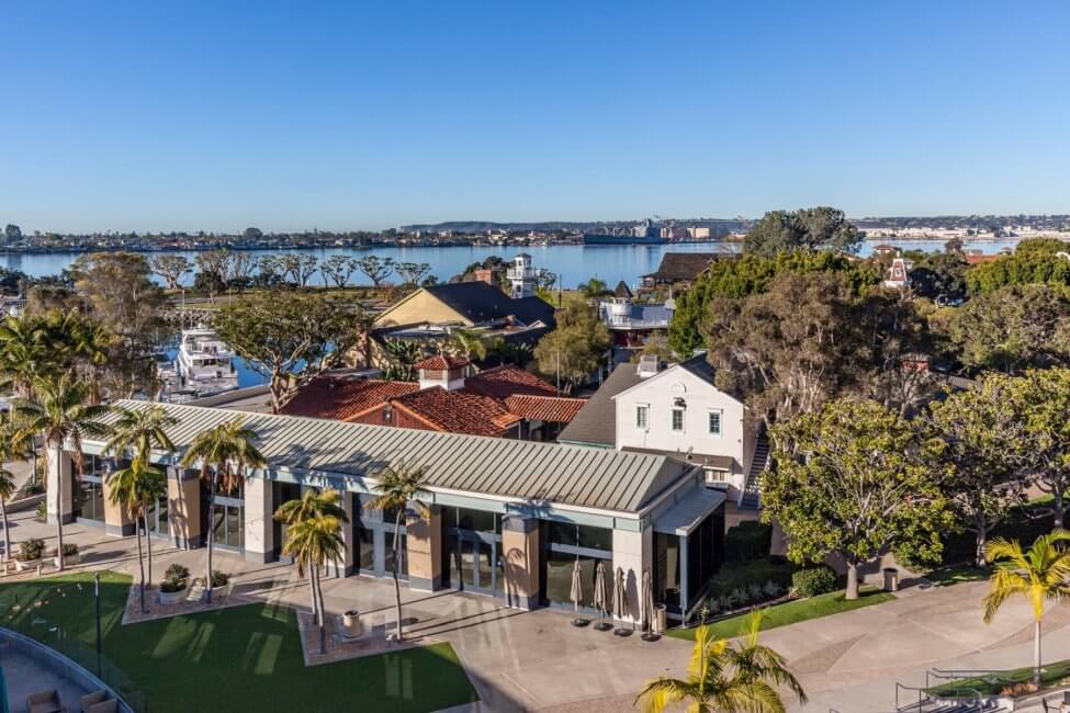 From there walk across the street and go to the Santa Fe Depot. Take the Green Line Trolley and get off at the first stop which is Seaport Village. From there you can already see the hotel across the street.