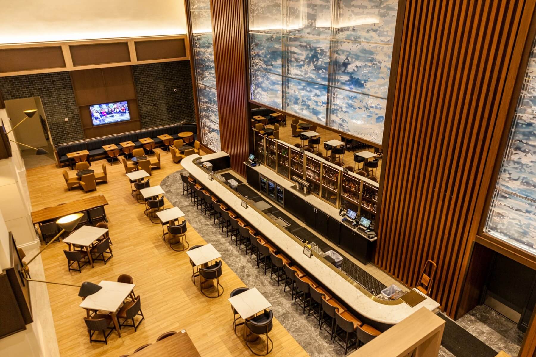 The Landing is located on the lobby level of the Harbor Tower and right next to the lobby itself. It feels like an upscale sports bar with all the TV screens. They were even showing the Superbowl here. The landing offers a distinct selection of hard to find whiskeys, bourbons, and more.