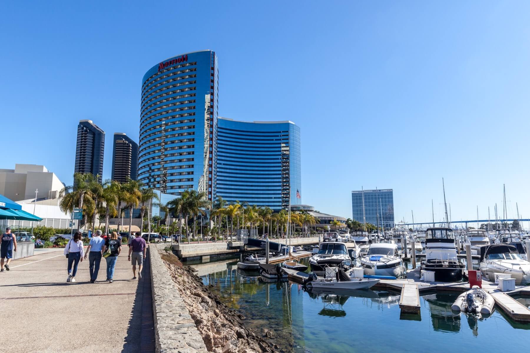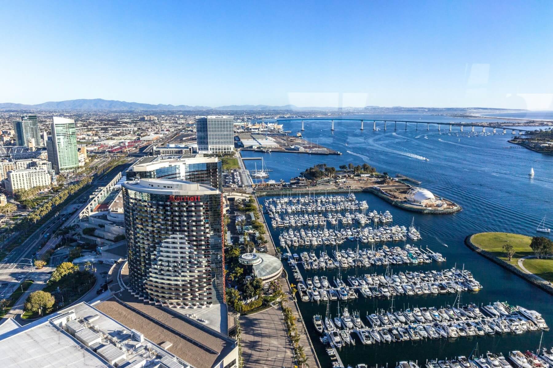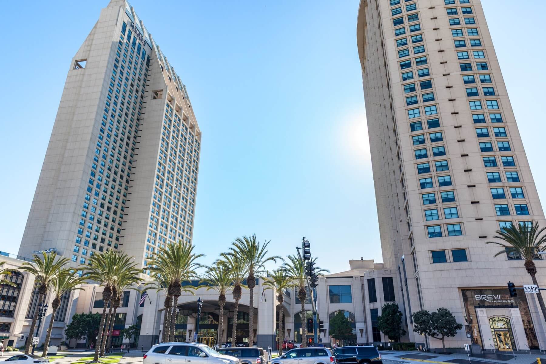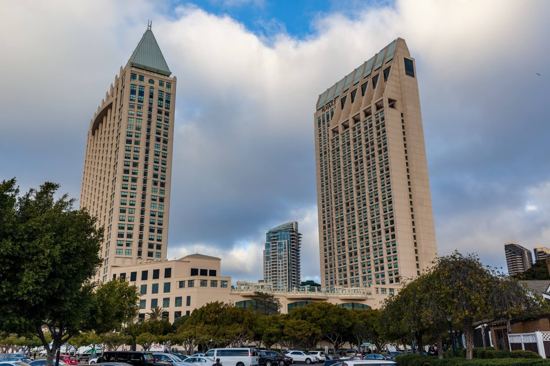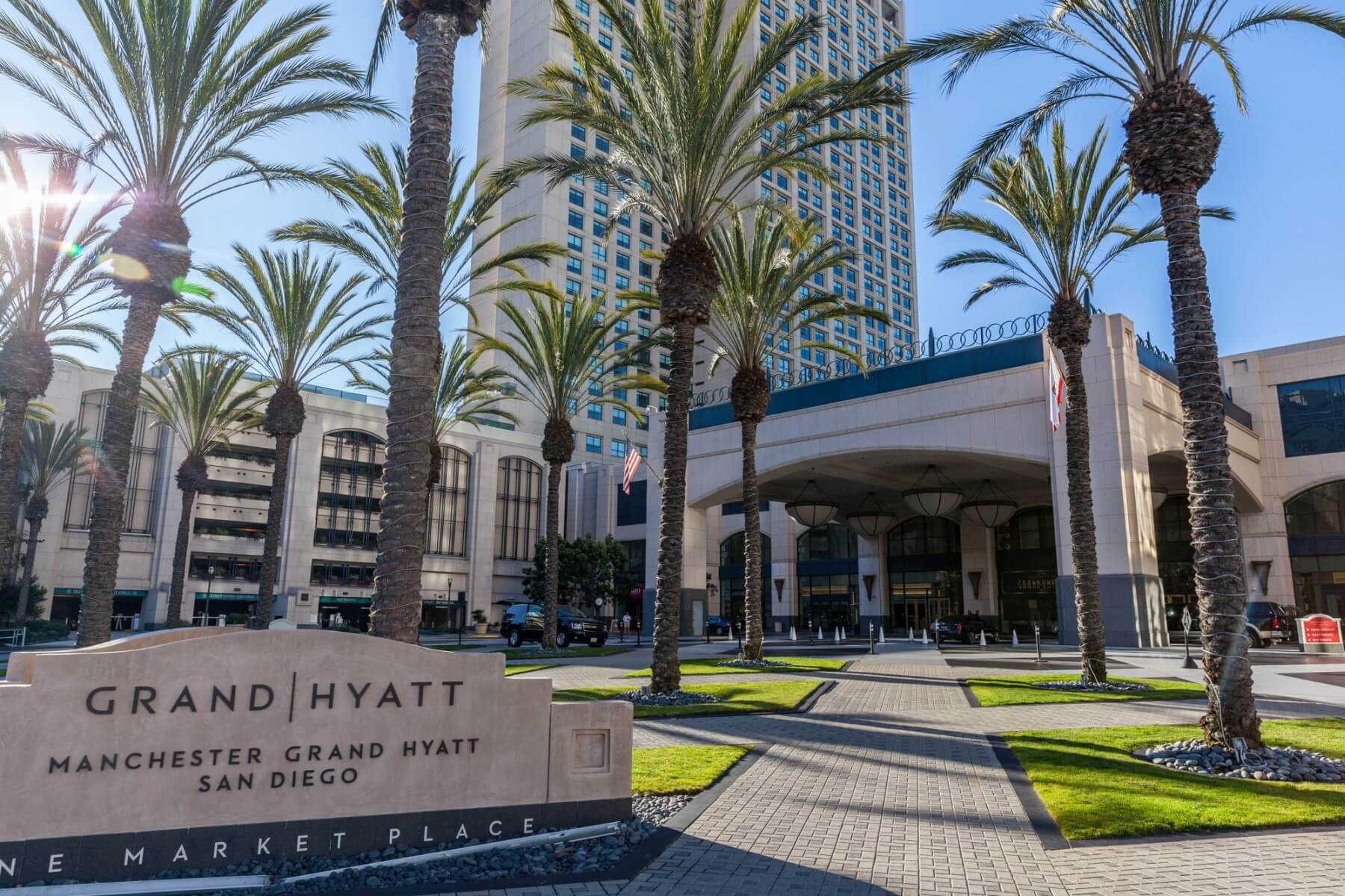 The Manchester Grand Hyatt San Diego is located in the Marina District of Downtown San Diego. It is one of three hotels located on the waterfront. Adjacent to the hotel is the Seaport Village, a great place for shopping and dining along the San Diego Waterfront. As part of your destination fee, you get a VIP Shopping Pass for the Seaport Village. Just across the street from the hotel at the corner of Harbor Drive and Market Street is a stop for the San Diego Trolley. The trolleys are a convenient way to explore San Diego. Buy a Day-Pass and enjoy unlimited rides for one day. Besides all the dining options in-house and at the Seaport Village, you also have the Cheesecake Factory right next door. Many of the waterfront attractions are just a short walk away. Other close-by destinations include the San Diego Convention Center, Petco Park, and Gaslamp Quarter District.