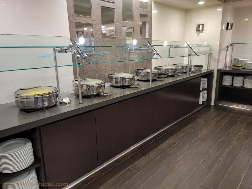 The evening spread is great here as well. Offerings include daily-changing “entree” items and a build-your-own salad bar. Not to forget, delicious desserts. Happy hour is during the first hour of the evening service during which all drinks like beer and wine are complimentary. After the first hour, it’s an honor bar and you can buy them for a small fee. Still a whole lot cheaper than at all the other bars and restaurants of the hotel.
