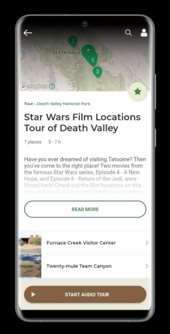 Once you “open” a park in the app, you get all the information about that park you need. Everything from things to do, to the best sunrise and sunset spots, locations of the passport stamp, and even guided audio tours. At the very top of each park, there could be a banner displayed if there are alerts for this park. This could be road closures, construction projects, and so on. Just keep an eye out for it.