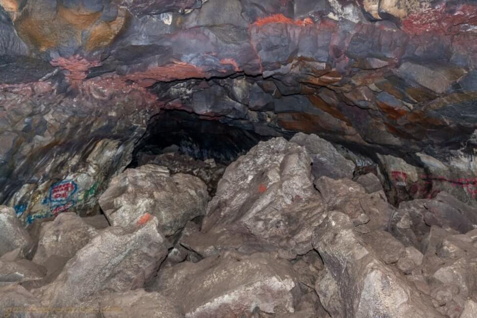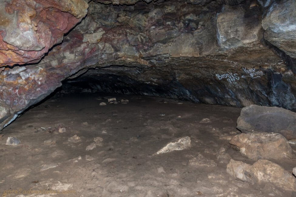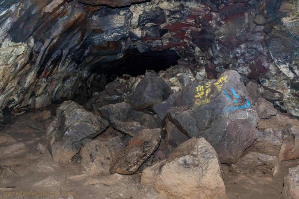 You will know when you reach the end of the cave as the ceiling gets very low and you can crawl on for a bit but will ultimately end up at a dead end. There is also a ton of graffiti there just like throughout the rest of the cave.