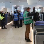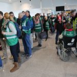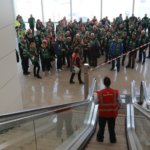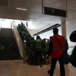 We were now half of all the people who participated today. We got split again in half and my group started out in K11 now. Since we were so many and the coordinators were all the way on top of the flightbridge, people inside the flightbridge couldn’t hear all announcements. I didn’t get a boarding pass this time and was told that I will be an incoming passenger with the final destination Munich. Fine for me! That means following the exit signs to the area where I can board the underground train system, connecting the satellite with the main terminal. Just a little bit after I exited the gate area, I was stopped by police. They were also participating in this test operation. I was asked where I was coming from, boarding pass and ID: Since I couldn’t hear were I was coming from and I never got a boarding pass, the police officer was confused too in this scenario. Usually I would have a boarding pass, even if I terminate my travel in Munich. He let me go and I was continuing my way through passport control towards the elevators down to the train. I am a little bit sceptic if three elevators can handle a mass of passengers from a big airplane. I guess we will see in a couple of month.