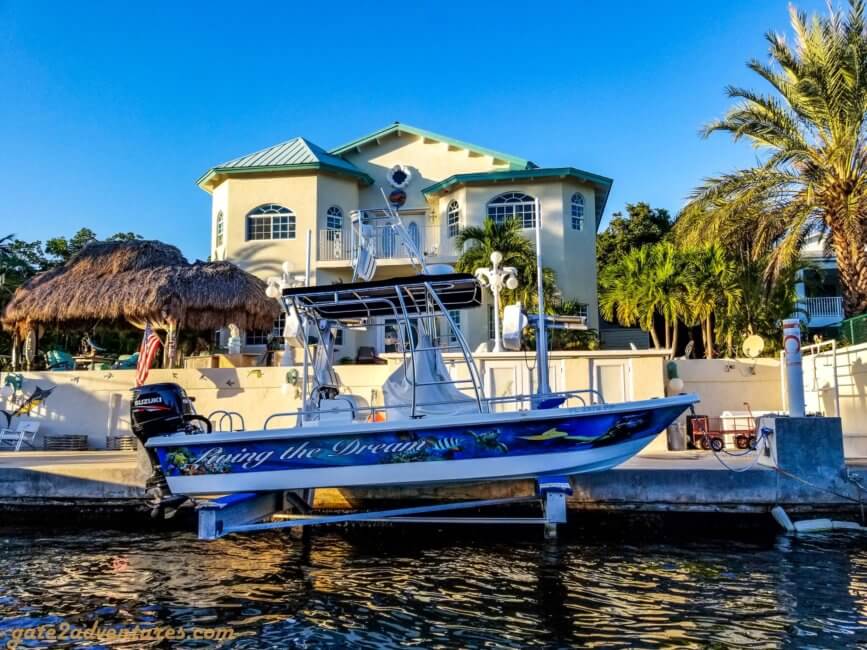 We met up at Quiescence Diving Services in Key Largo. Where we would take a boat out to two different diving sites. After checking in, I met up with my instructor and the other student out back. We all got our gear and carried it down to the dock. Where we waited for our charter boat to be ready.
