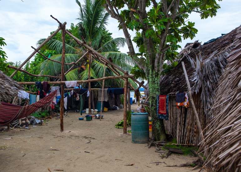 After a drive of more than 2 hours, we arrived at the beach area in Kuna Yala. The drive there is already an adventure, once you leave the main road the Pan-American Highway you go from paved roads to dirt roads to paved roads and so on (see video below). Once at the beach, we unloaded our stuff and got ready for heading out to the islands. The people take care of your luggage and stuff, but make sure you pack waterproof.