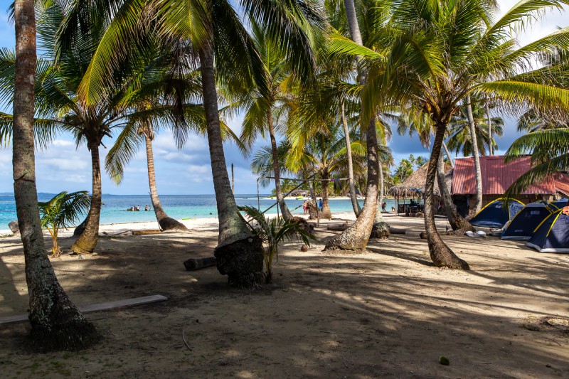 The territory of the San Blas islands also called Guna Yala or Kuna Yala goes along the northeast side of Panama all the way down to Colombia. This territory is inhabited by the Kuna and it has its own Flag. The territory consists of about 365 islands and only about 50 of them are inhabited by the Kuna. There you can find some hostels and restaurants. On the other island, you can camp on and the Kuna will take you there and even take care of the food, but you also can do your own BBQing.