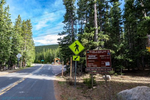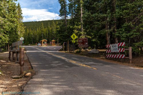 The turn-off to Mount Evans Road is right after Echo Lake Lodge. The road is usually kept open from Memorial Day through Labor Day but can be closed without notice in case of severe weather conditions.
