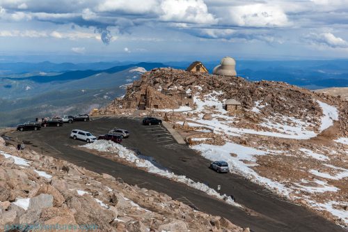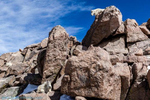 Some of the most frequent visitors of the Mount Evans summit are bighorn sheep and mountain goats. I was able to spot a bunch of them on the rocks behind the Crest House. They were just hanging out on the slopes. Respect the wildlife by viewing from a safe distance. Don’t harass, chase or feed wildlife. This is illegal.