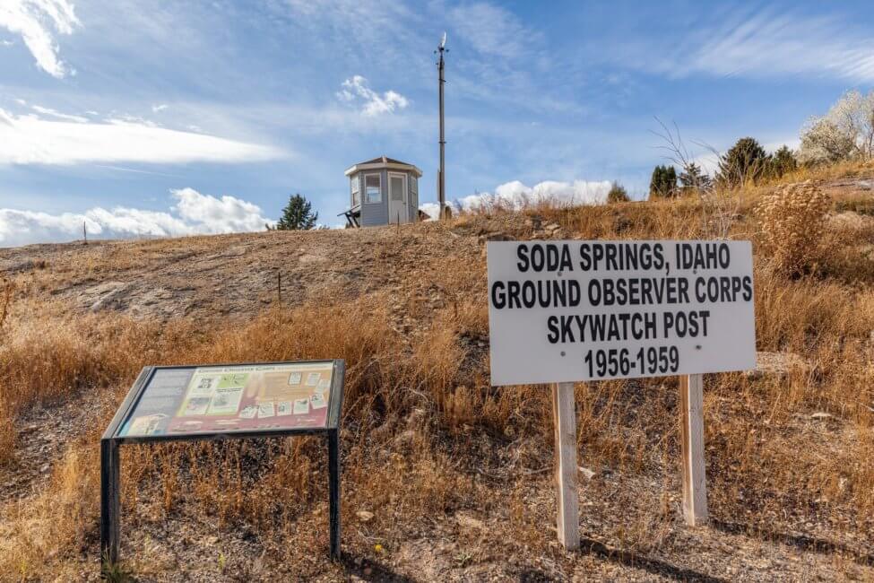 Right next to the geyser you find a little watchtower. During the Cold War years of 1956 to 1959, this building served as skywatch post. There was a great fear of a Russian bomber attack and there was no radar coverage established as we have it now. The information sign below the building gives you a lot more information about the skywatch post.