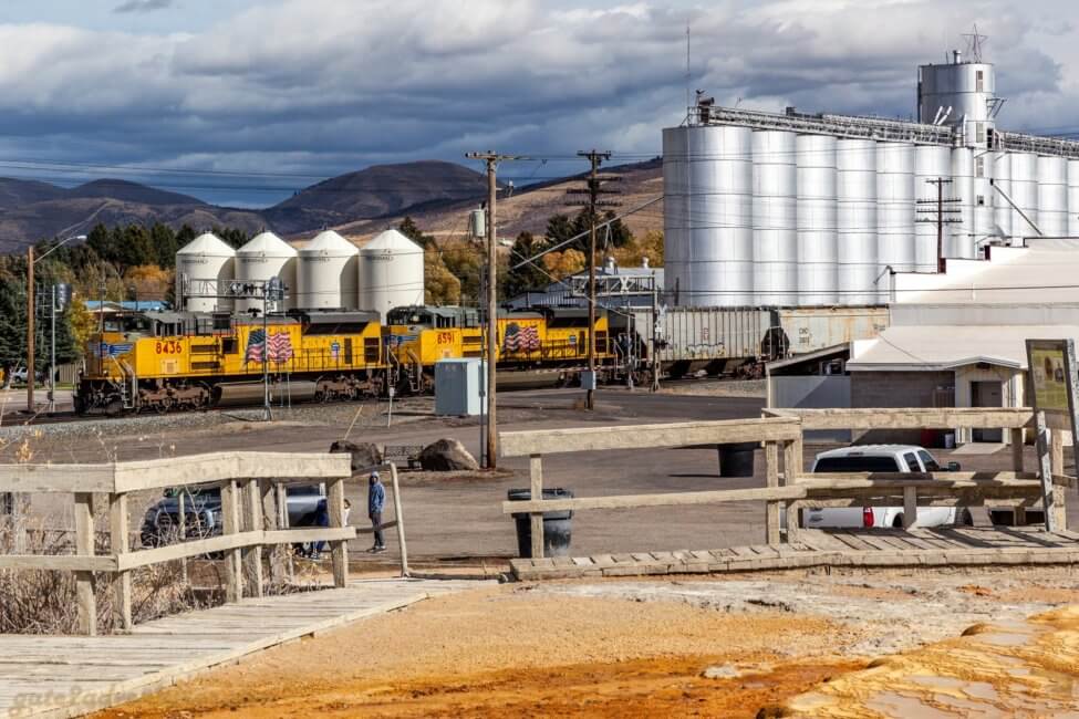 If you are lucky enough, you can watch a train rolling through town. The train tracks run behind Geyser Park and cross Main Street.