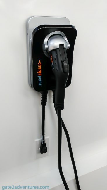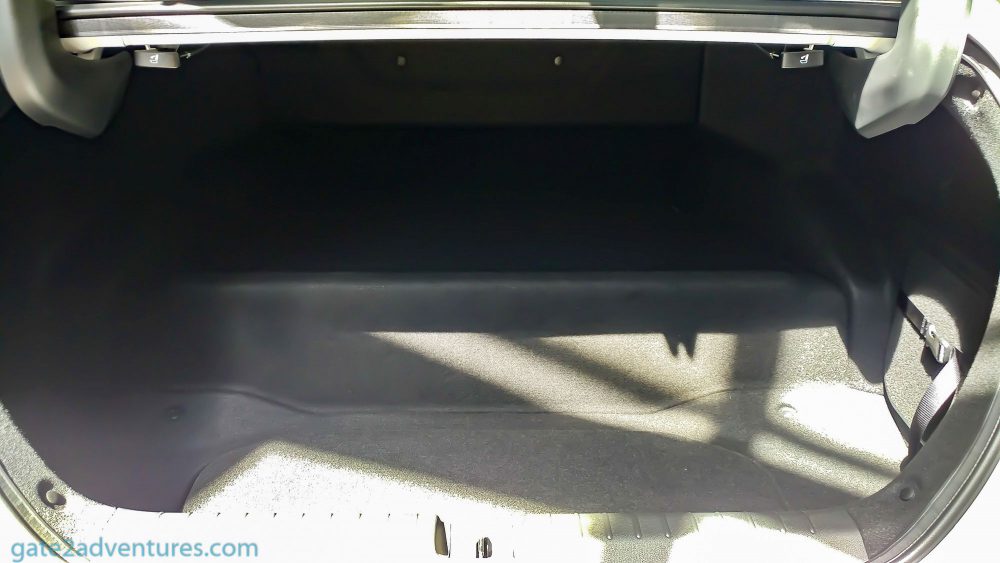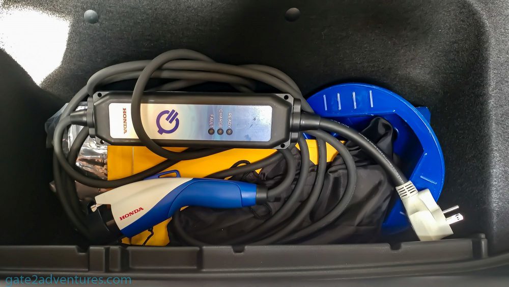 With 14,3 cu-ft trunk space and a 60/40 split folding rear seat, you have enough storage even for bigger gear or shopping trips. There is a little lid in the trunk which gives you access to another hidden storage compartment which holds the regular Level 1 charging adapter and some vehicle accessories.