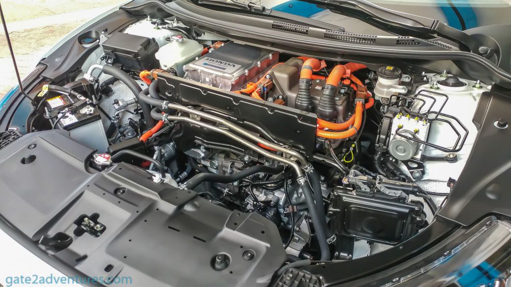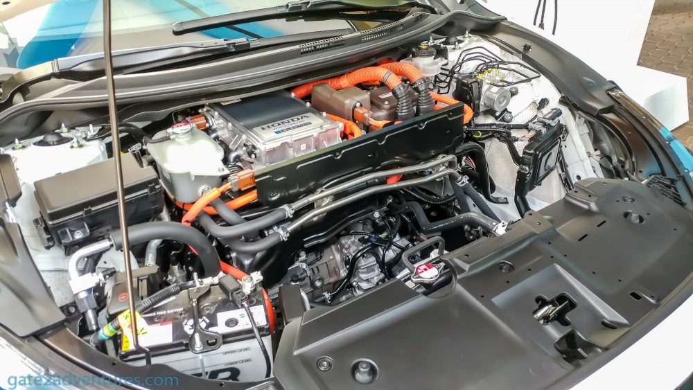 The Clarity Electric and the Clarity Fuel Cell share the same chassis. This gets obvious when you pop the hood and look in the “engine compartment”. There is a big unused space which gets used by the Clarity Fuell Cell but not the Electric.