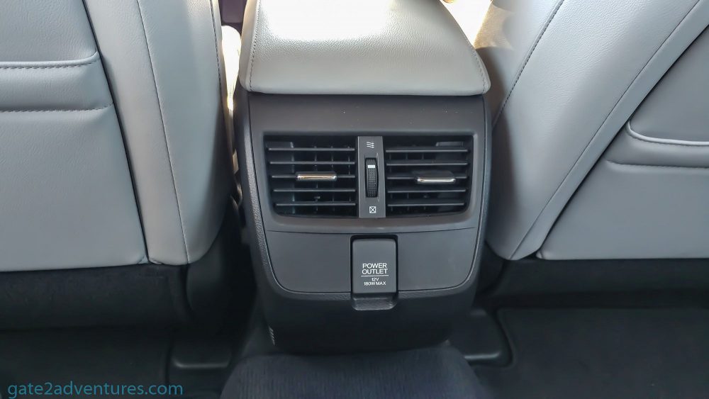 A really great feature is the integrated smartphone pockets in the driver and passenger seat. This allows the person sitting behind either one to stow the cell phone just in arms reach without having to search through big pockets. The center armrest can be folded up to get access to even more storage space inside the car. Cupholders are strategically placed for all passengers of the car and there are 12V cigarette-lighter outlets in the front and back. All of the features are standard in every car.