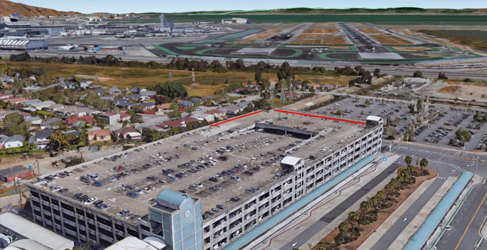 This site is no longer available as there is now a Residence Inn Hotel between the parking garage and the airport.