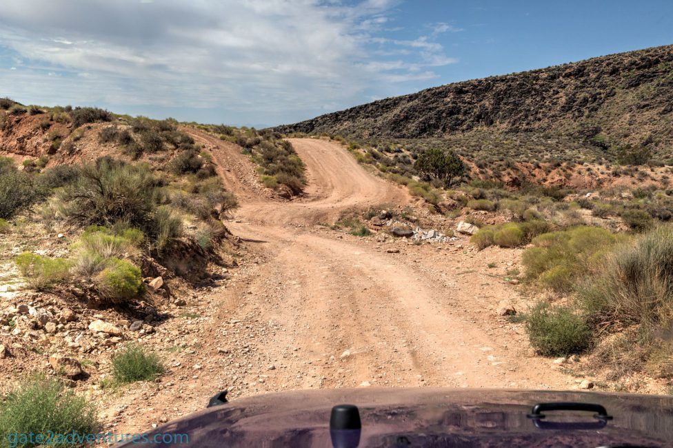 From Toquerville you have to take Spring Dr. almost all the way to the falls. Keep your eyes open, the falls will appear on your right once you head down the last hill. You can see the fall in the distance. Once you made it down the hill you have to make a right to get to the falls themselves. There is no sign but it’s the only trail that intersects with the Spring Drive trail. You can also download the GPX file below and follow my route to get to the falls. You need an app on your phone or a GPS unit that can handle GPX-files. For Android, I can highly recommend Locus Map. There is no cell phone reception once you leave Toquerville and you might not even meet other people out there. Be prepared and check your spare tire. Drive carefully and cautiously. If you are unsure how to take a section of the road, step out and check. Also, be careful around corners. You might encounter other off-roaders and be prepared to stop to avoid collisions.