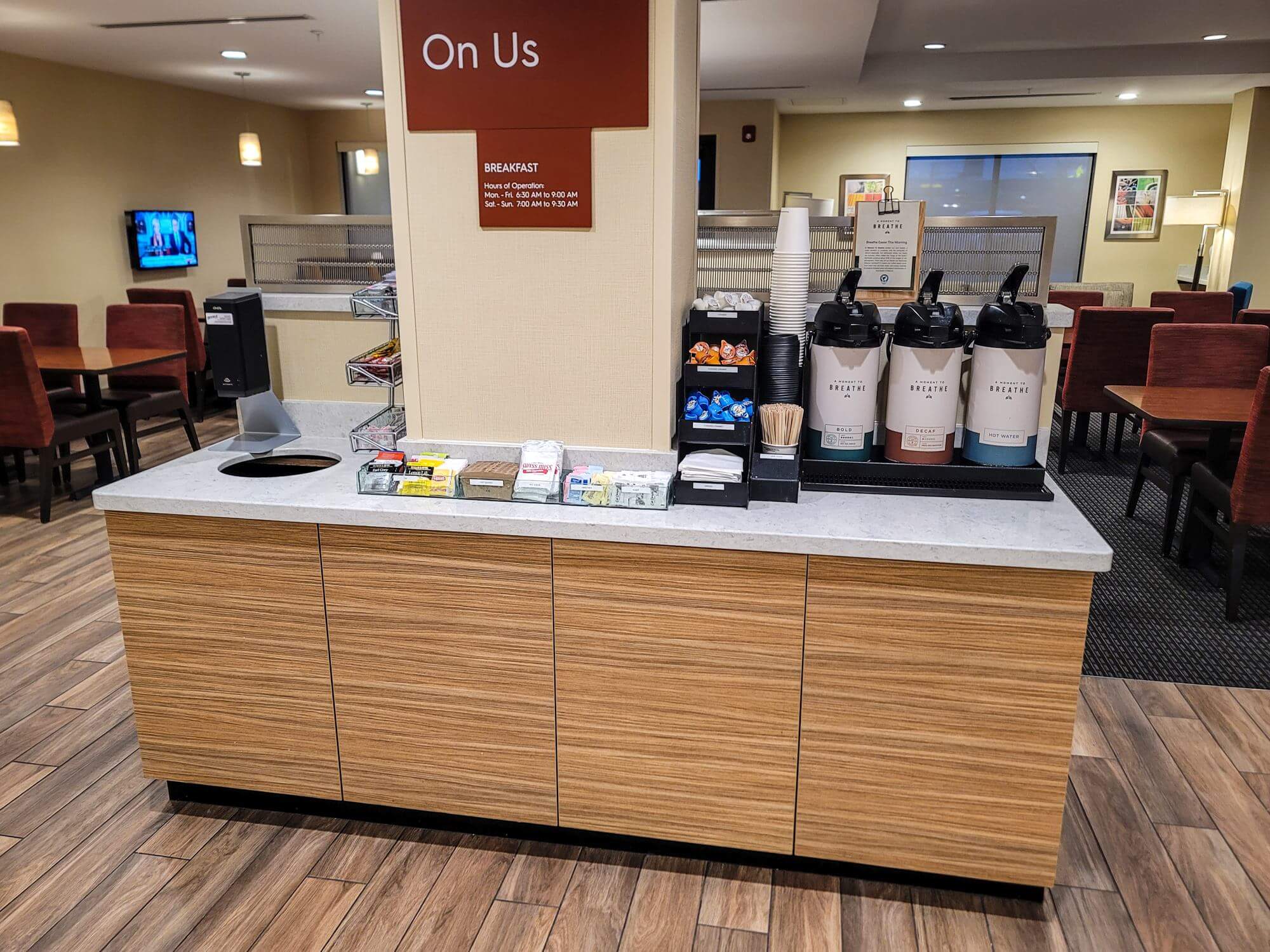 The breakfast at the hotel is rather subpar. It comes with lots of items which just get pre-heated which I am not a big fan of. Otherwise, the selection was rather thin too. However, the staff was quick to replenish all the breakfast items.