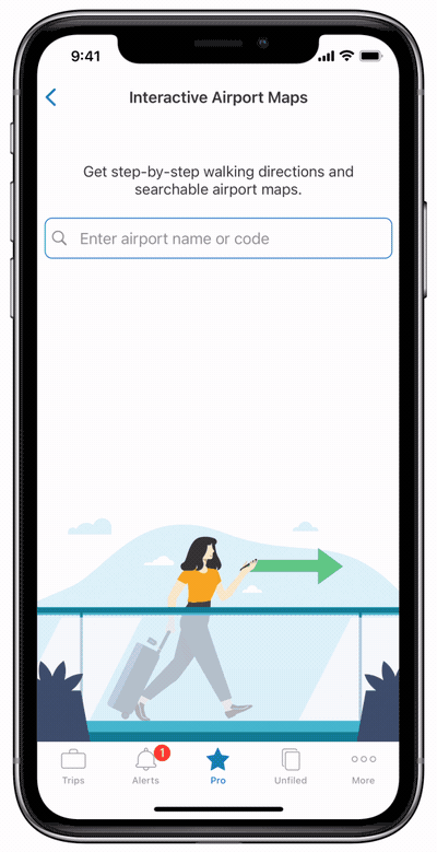 To use the interactive airport maps, go to your flight details screen and under Airports, you will see airport maps for your departure, layover, and arrival airports. Airports labeled with “Pro” can show an interactive map. Currently, there are 105 global airports that offer these enhanced interactive maps. There you can search for these health- and safety-related amenities. For example, you can enter “COVID-19” for testing sites, “hand sanitizer” for stations, “mask” for shops selling face coverings, and “PPE” for PPE vending machines.