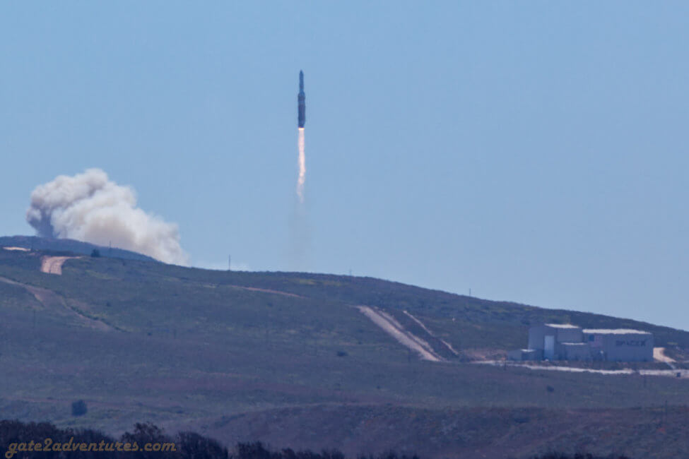 And then it happened. Delta IV Heavy lifted off from SLC-6 at 1:47 PM PDT. One minute later as originally scheduled. We had a great view of the rocket climbing over the mountains but the distance and the haze created some distortions in the photos. Find more photos of the launch in the gallery at the end of the post.