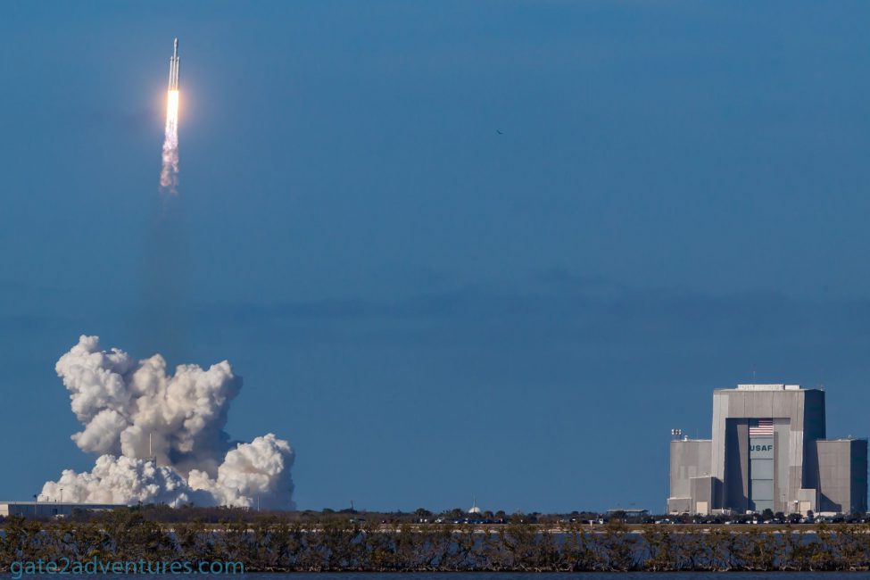 I watched the launch from the VIP Rocket Launch Viewing Area of the Cape Canaveral Air Force Station. Unfortunately, it was not as close as for the Falcon 9 CRS13 launch end of December 2017 but I was still able to get to see, feel and hear the rocket taking off. The advantage of this location was, that we were closer to SpaceX’s Landing Zone 1, where the 2 booster rockets landed almost simultaneously a few minutes after the launch. The rocket took off from the historic Launch Pad 39A at NASA Kennedy Space Center. The same launchpad was used to launch the Saturn V rockets which took us to the moon as well as numerous Space Shuttle launches. With the successful launch of the Falcon Heavy, the rocket made history as the most powerful operational rocket. Just the Saturn V was more powerful.