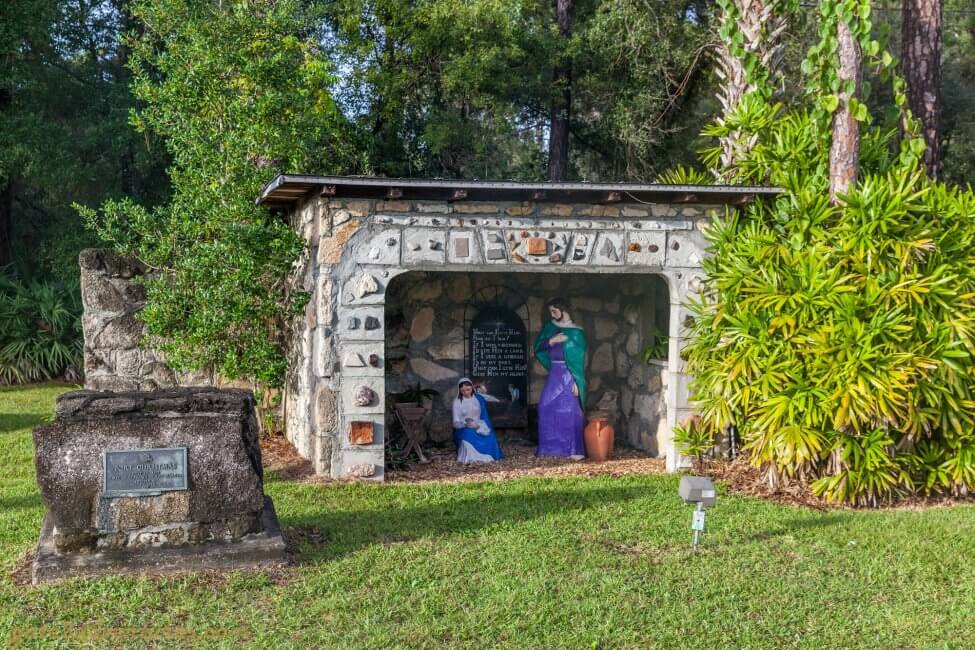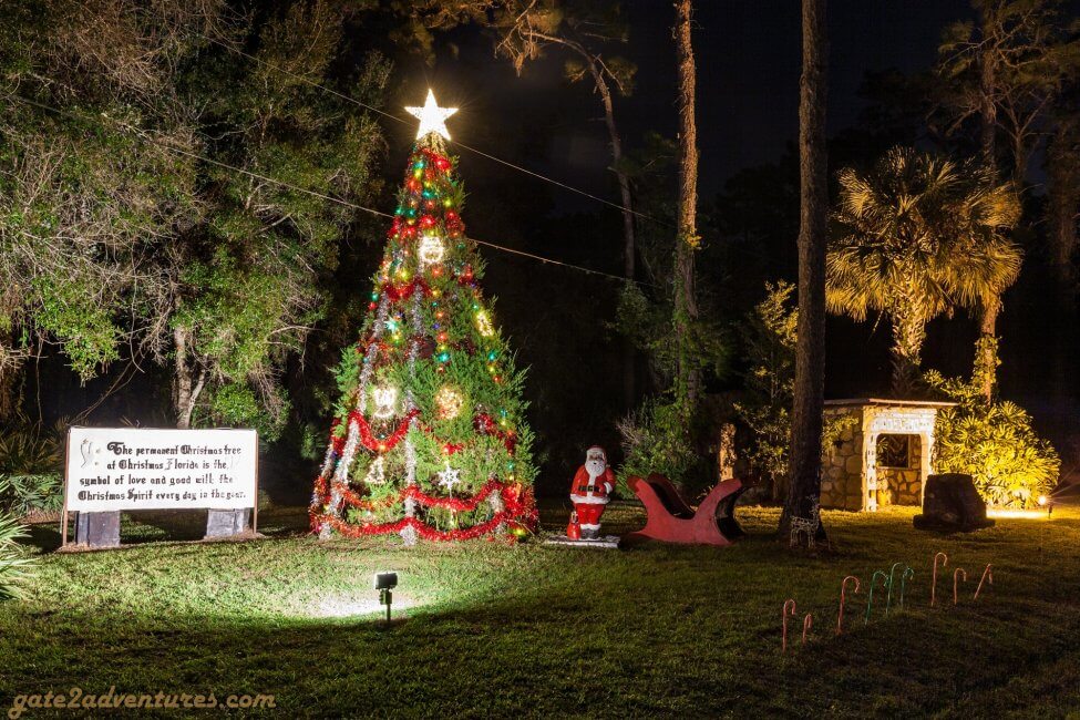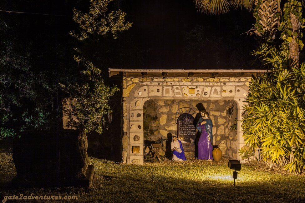 A special highlight is The permanent Christmas Tree on the corner of E Colonial Dr (State Route 50) and S Fort Christmas Rd (County Road 420). Nearby are the nativity scene, a concrete Santa and a red wooden sleigh. Besides the main area with the tree and the nativity scene, there is a second one if you keep following State Route 50 east. Don’t forget to check out the area behind the tree. There are three larger crosses and remains of a park or something. Make sure you check back here at night when the tree is lit up. This place is worth visiting no matter what religion you are.